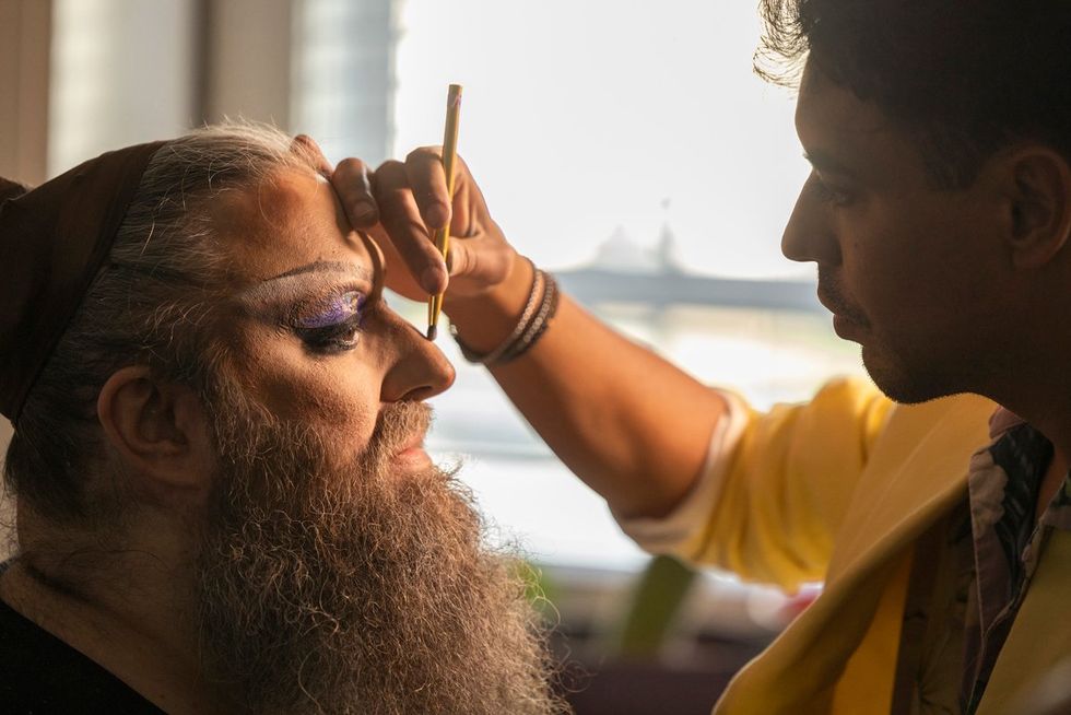 Priyanka: Mainstream media picking and choosing what we’re exposed to is such a big problem. We only feel the urgency if the news tells us, or if we see it on TikTok. In Canada, they banned the sharing of news online so we see no headlines. It’s only basically what our algorithms want to show us. With We’re Here being on HBO with a fresh new cast to make some noise, it becomes its own form of news by making sure people are still aware of the struggles and issues queer people face on a day-to-day basis. I also know that online everything feels zero to 100 all the time, with a show like We’re Here you get to ease into the experience of a queer person that lives in America. You get to see them as humans, not news headlines.