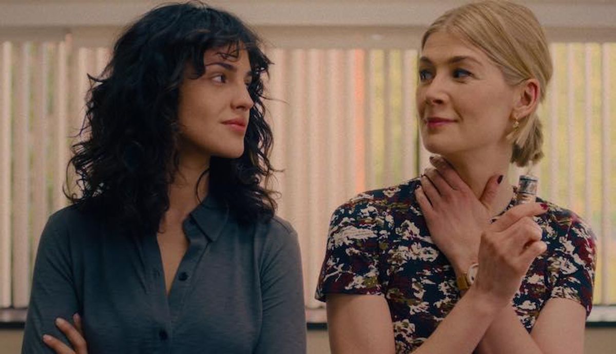 "I think J., the writer-director, has a very secure understanding of this space, and he is constantly casually and quietly subverting many expectations," Pike tells The Advocate. "Traditionally, in a film script, if a character was the detective or the doctor, the casting would immediately assume that those characters were male," she says of characters in I Care a Lot played by women.