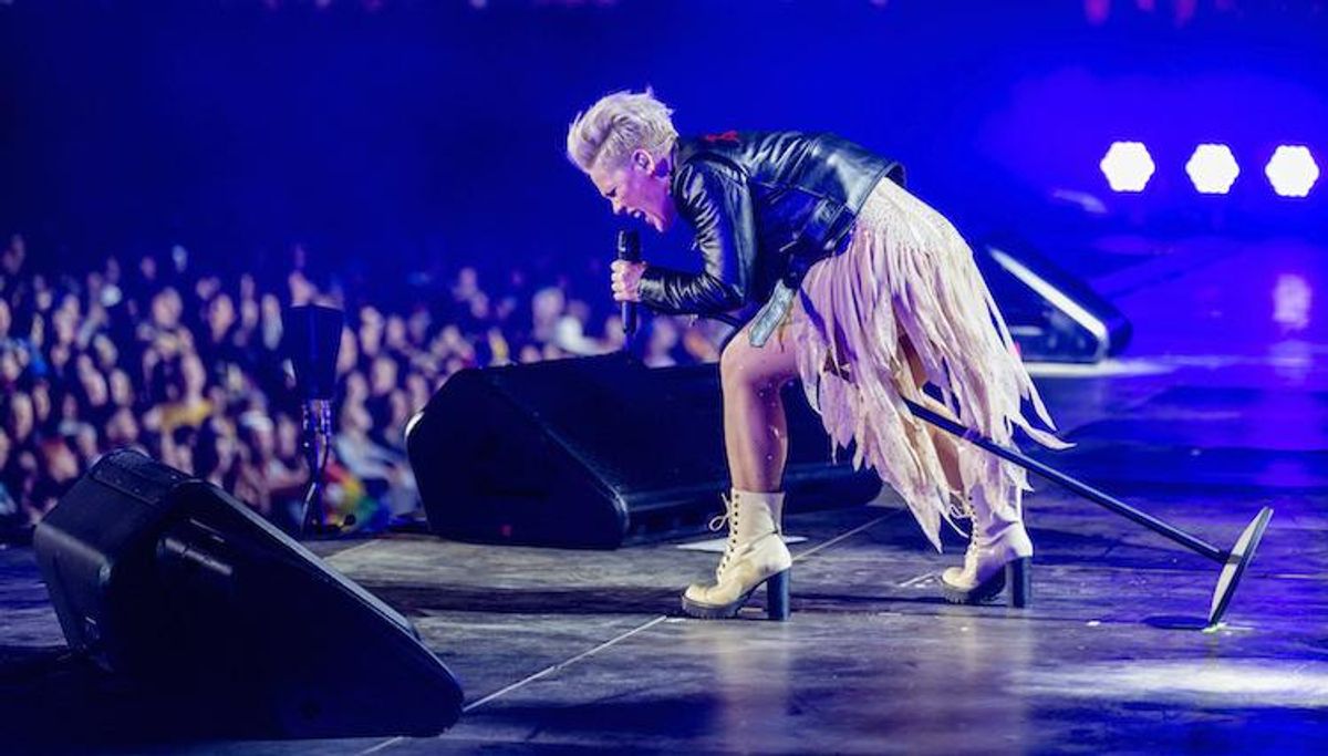 On a cool and sunny Monday evening in mid-May, P!nk took to the stage at the famed Hollywood Bowl in Los Angeles ahead of the premiere of her documentary All I Know So Far. It was the first time the brash performer renowned for belting her tunes while executing complicated feats of acrobatics above the audience had performed live in more than a year. Sporting a billowing yellow dress and a grin from ear to ear, she sang a short acoustic set to a socially distanced audience that included frontline workers. The crowd at the Bowl, which seats 17,500 people, was purposefully thin for the event, but the energy for P!nk and the film was kinetic, especially when she sang her clarion call for outsiders "What About Us" from her Beautiful Trauma (2017) album. The outdoor setting with an audience of people who've been deprived of communal connection these past 15 months was the perfect fit to introduce the documentary that follows P!nk on her Beautiful Trauma tour in Europe during the year or so leading up to shutdowns.