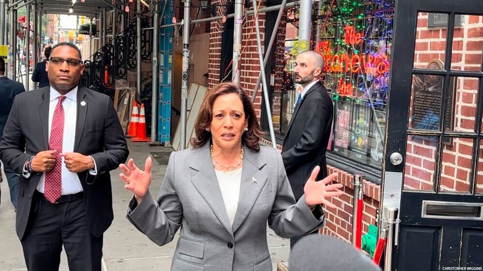 Harris briefly spoke to reporters as she was leaving the Stonewall Inn.