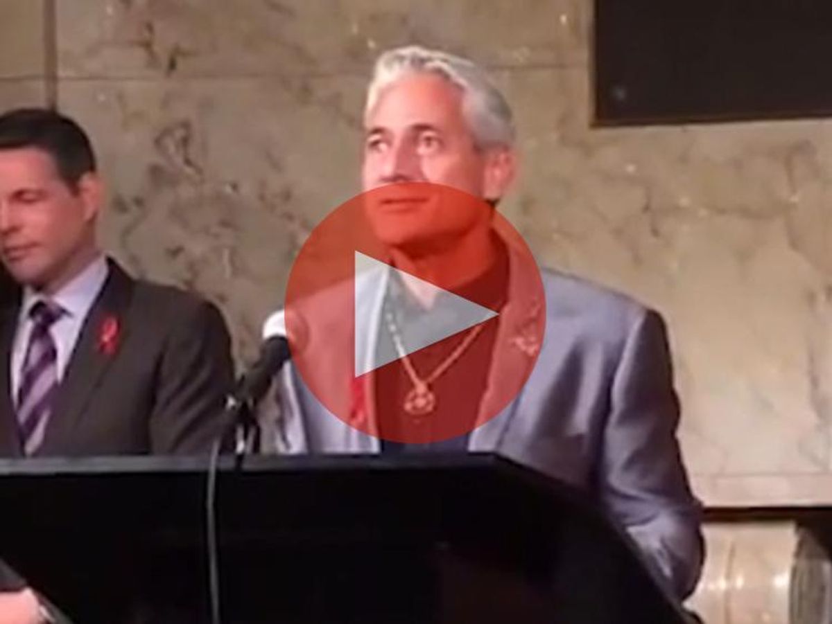 On World AIDS Day, we came together at an event hosted by The Advocate in Beverly Hills to share words of hope. Panels from the AIDS Memorial Quilt were on display, and speakers included Olympic diver Greg Louganis, actor Mel England, The Advocate's Lucas Grindley, and Dr. Michael Gottlieb, the man who identified the virus in 1981 as a new disease.