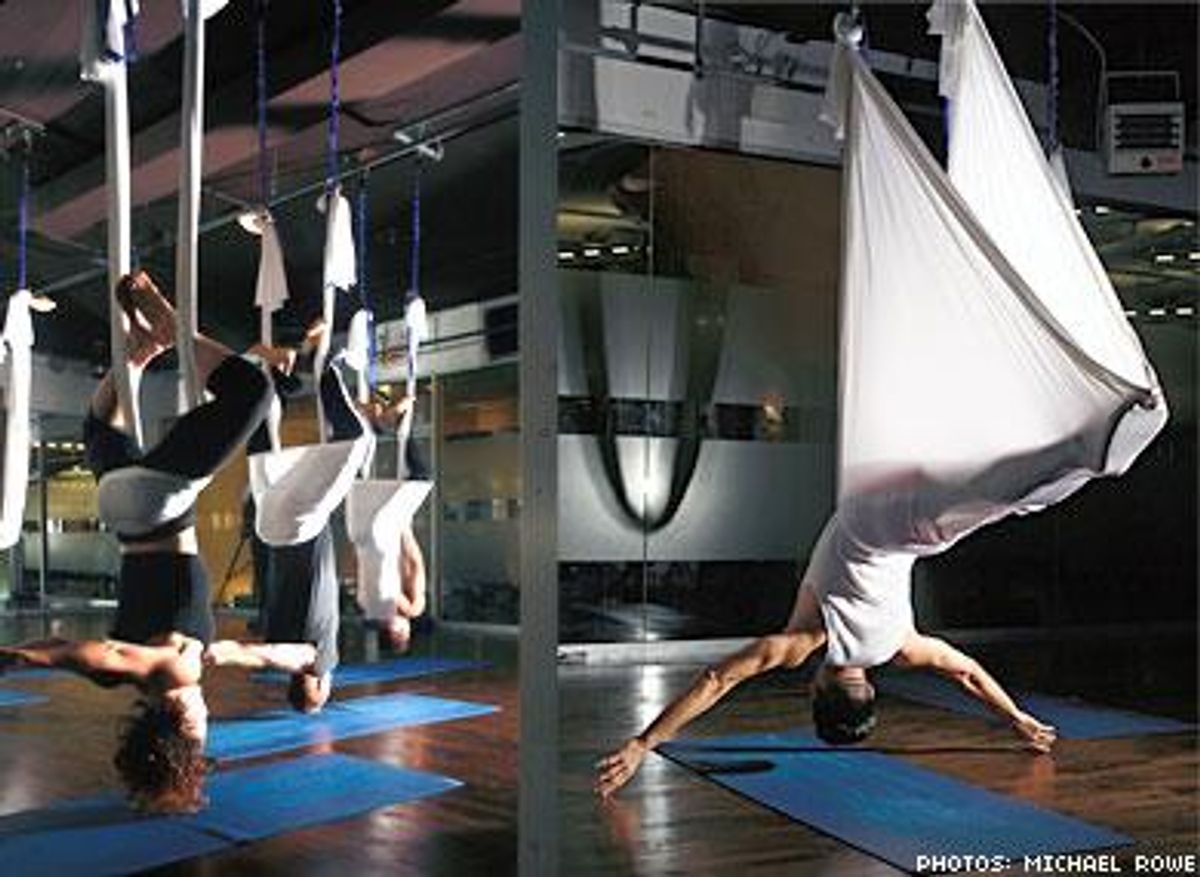 The moment I saw hammocks suspended from the ceiling at West Hollywood's Crunch gym, I knew this was no traditional yoga class. The only yoga I knew has you holding different positions while grounded on terra firma, not hanging upside down. Says Christopher Harrison, a gay man who used his background as an aerobics instructor to create AntiGravity Yoga: "The AntiGravity Hammock requires that the participant distribute his weight between the floor and the hammock, changing the physical dynamic completely."