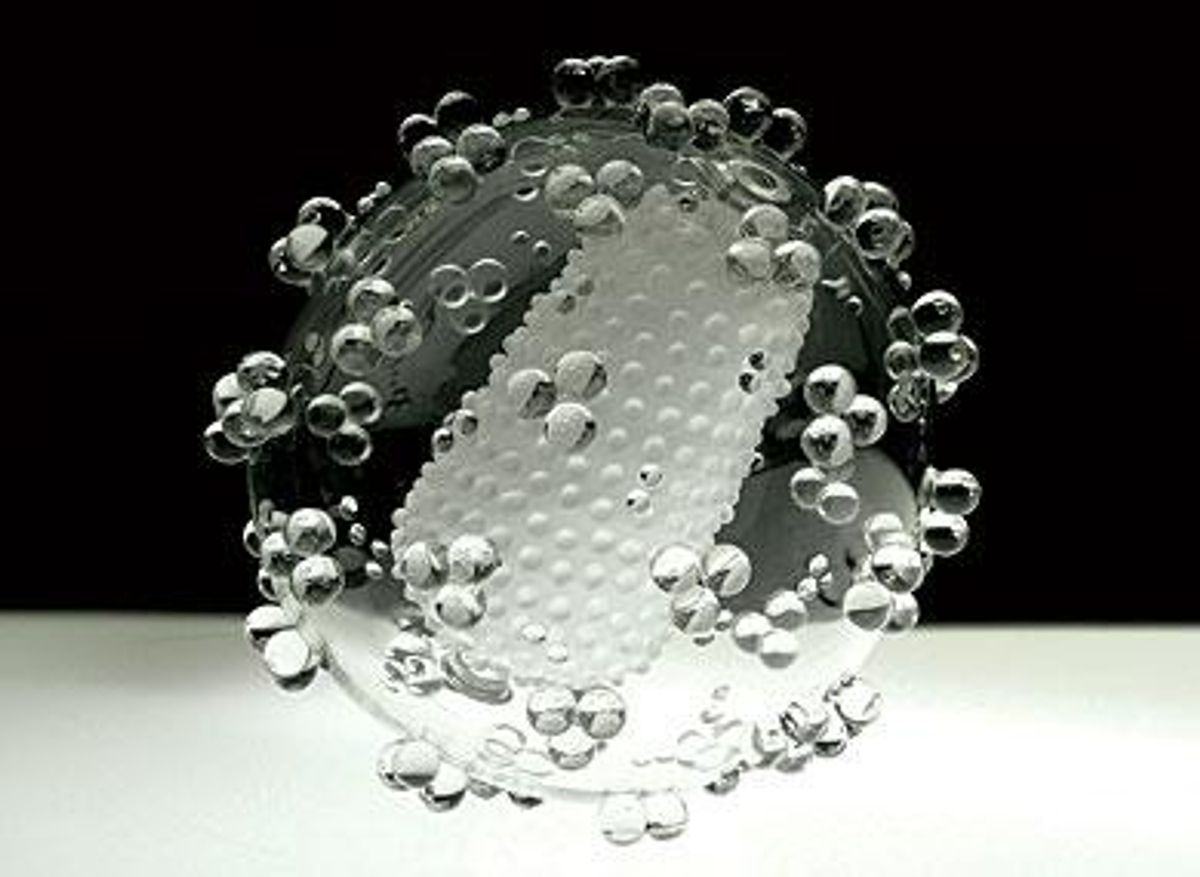 Perhaps best known stateside for Play Me, I'm Yours--an installation of pianos on city streets and in public buildings across the globe "for the public to enjoy," including 60 placed throughout all five boroughs of New York this year--British artist Luke Jerram is all about sculptures, installations, and live art projects that he hopes excite and inspire people, that he says "explore the edge of perception." And that's precisely the motivation behind his creation of transparent glass sculptures of microbes that are having a major effect on our planet, including an HIV cell (above). Jerram believes there's a need to contemplate the global impact of each disease and to consider how the artificial coloring of scientific imagery affects our understanding of phenomena.