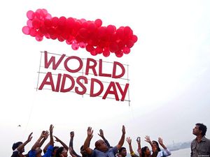 Social activists observe World AIDS Day by flying decorative gas balloons carrying messages regarding eradication of stigma and discrimination on HIV/AIDS on December 1, in Calcutta, India.