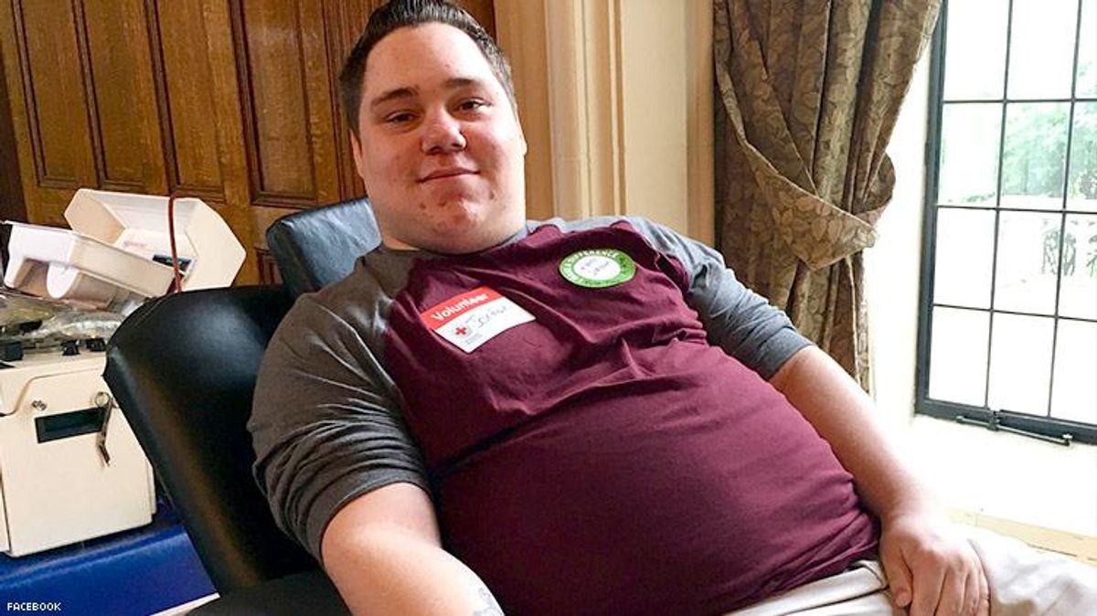 Jordan Moll-Vigrass, 22, gave blood at the Gay Alliance Blood Drive at the American Red Cross headquarters after a year of abstinence from sex, as per the Food and Drug Administration's policy on blood donations from gay and bisexual men. Prior to 2015, the FDA had banned blood donations from gay and bisexual men altogether.