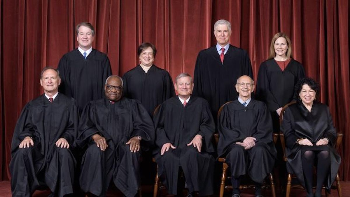 Four conservative justices -- Thomas, Neil Gorsuch, Amy Coney Barrett, and Brett Kavanaugh -- have voted to side with Alito, forming a majority, a source told Politico. Liberal justices Sonia Sotomayor, Elena Kagan, and Stephen Breyer are working on dissents. The position that Chief Justice John Roberts will take remains unknown. One or more of the justices could still change his or her vote before the ruling becomes final, although that appears unlikely.