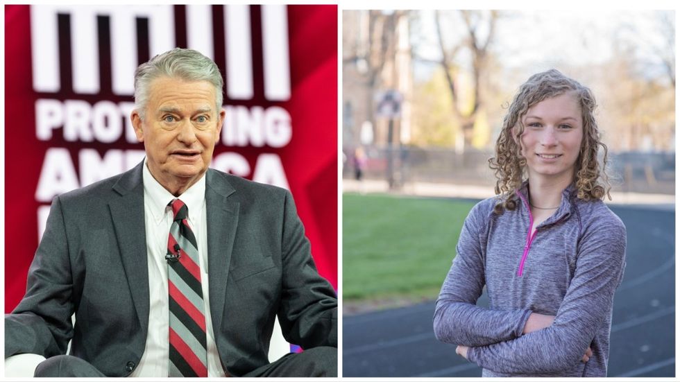 Pictured: Idaho Gov. Brad Little; athlete Lindsay Hecox