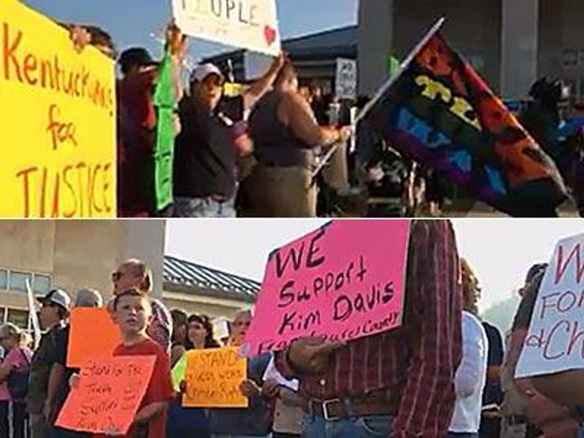 Across from them, supporters of Davis also lined the entrance to the courthouse, also holding signs and chanting in favor of the the clerk.