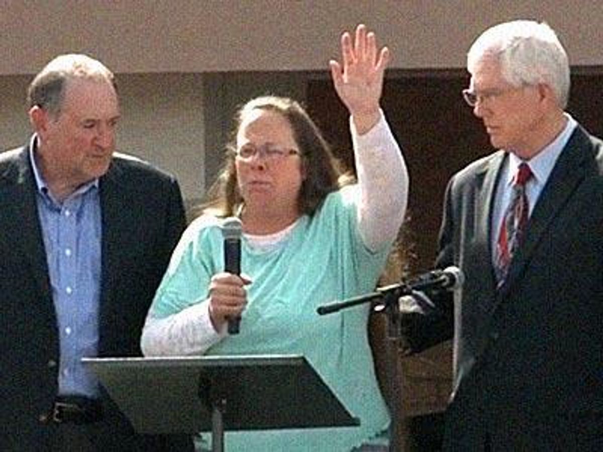 Staver decried those who have pointed out Davis's "past failings," including her multiple marriages and divorces. "There was a Kim Davis that was then, and there's a different Kim Davis now," he said, referring to her embrace of evangelical Christianity four years ago.