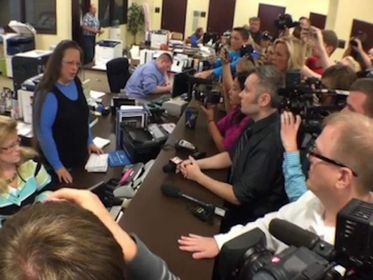 Video of their attempts to obtain a marriage license, recorded inside the Rowan County clerk's office, quickly went viral. Davis cited God as a higher authority than the Supreme Court.
