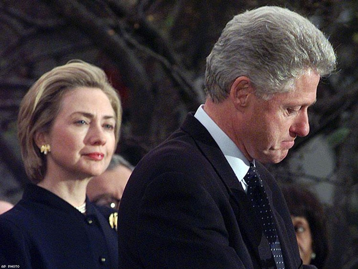 Melodramatic indeed. We don't excuse Bill Clinton's sexual behavior, but in case you wonder why some people think he and Hillary are monsters, well, it's because they read Breitbart -- and take it seriously.