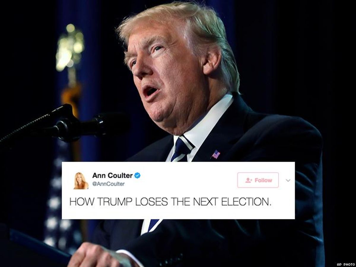 On Friday, Coulter tweeted that Trump may possibly lose the next election, linking an article from The Daily Caller as her source material.