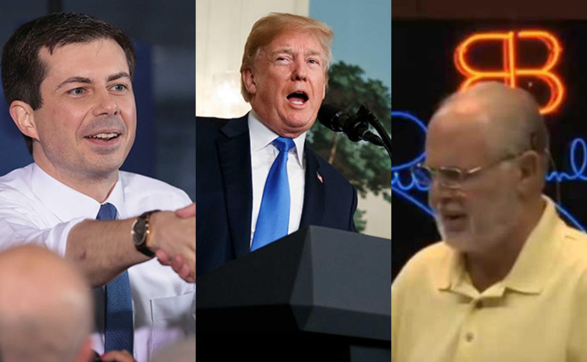 Democratic leaders, Limbaugh said last week, are "looking at Mayor Pete, 37-year-old gay guy, [former] mayor of South Bend, loves to kiss his husband on the debate stage. And they're saying, 'OK, how's this going to look, 37-year-old gay guy kissing his husband onstage next to Mr. Man Donald Trump? What's going to happen there?' And they got to be looking at that, and they've got to be saying, that despite all the great progress and despite all the great wokeness and despite all the great ground that's been covered, America's still not ready to elect a gay guy kissing his husband on the debate stage president."