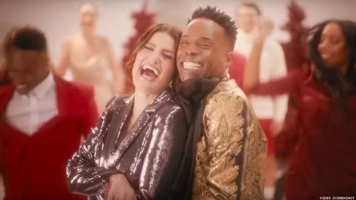 Tony Award winners Billy Porter (Kinky Boots) and Idina Menzel (Wicked) have teamed up for a showstopping rendition of Irving Berlin's "I've Got My Love to Keep Me Warm" that features a diverse cast of dancers, some of whom are clad in fabulous red suit jackets with shorts.