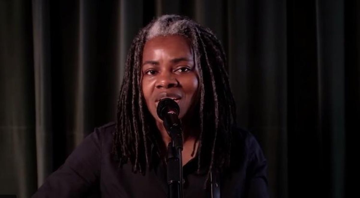 Grammy-winner Tracy Chapman made a rare appearance on Late Night With Seth Meyers on Monday, performing her classic call to action "Talkin' Bout a Revolution" and urging people to vote.