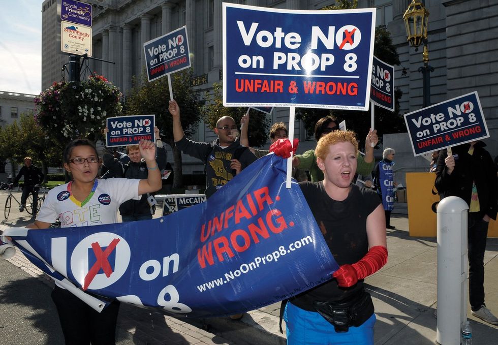 People protesting against Prop 8 in San Francisco, California, in 2008.