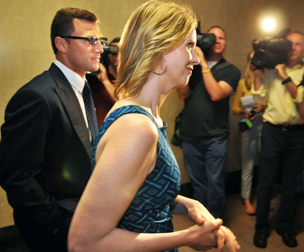 New York Rangers player Sean Avery (left) and 'Sex and The City' star Cynthia Nixon on their way to urge New York lawmakers to legalize same-sex marriage at the Capitol on June 14, 2011.
