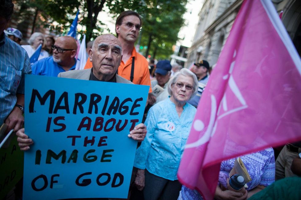 Opponents of same-sex marriage hold a rally in front of the 4th U.S. Circuit Court of Appeals on May 13, 2014 in Richmond, Virginia.