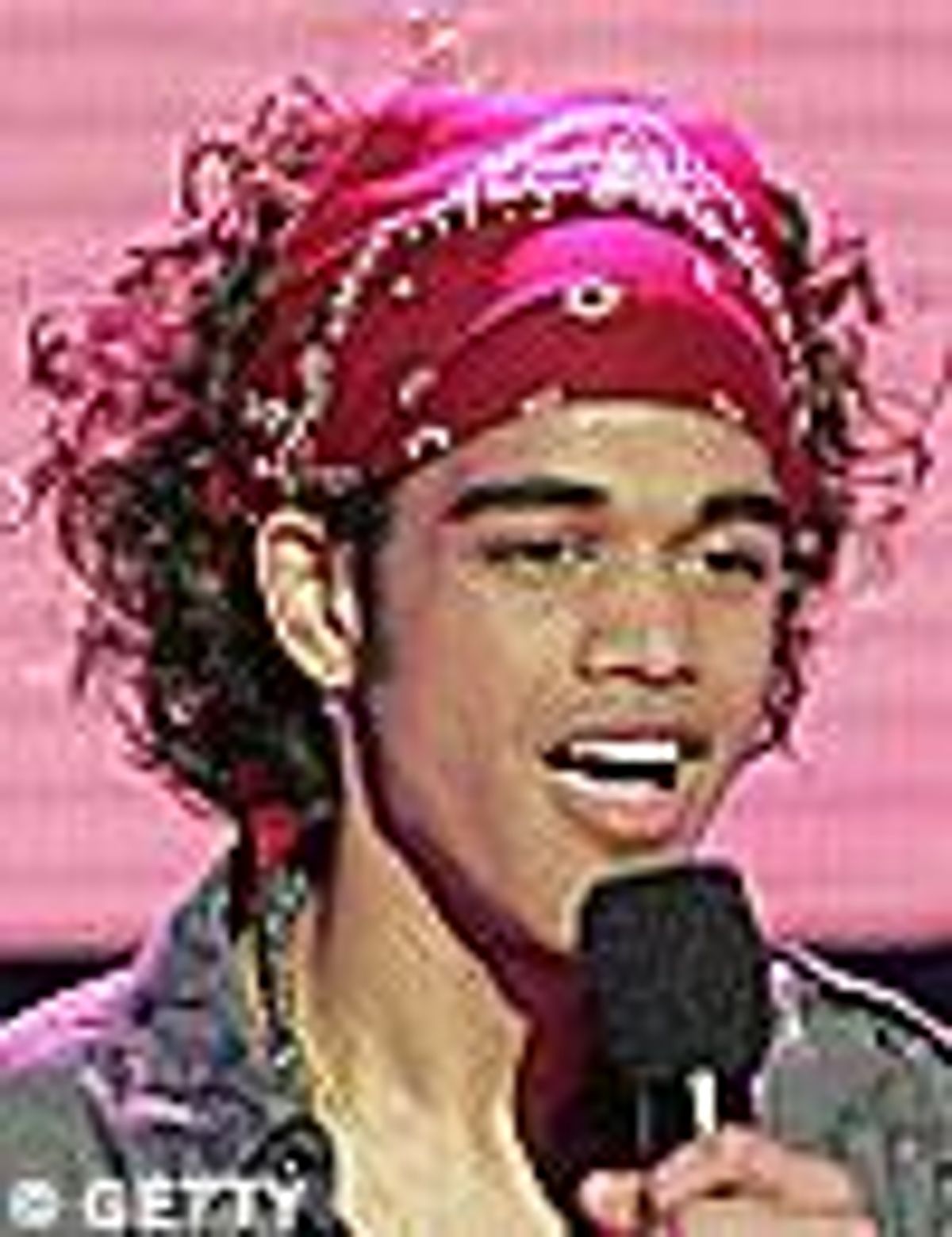 Another commercial break and then we're back and...sigh...Constantine is back. Again. If you recall last season--and really, do you have anything better to think about than who made repeated visits to the show last season--then you might remember how Constantine was frequently sitting in the audience. So now here he is again, Idol's most loyal alumnus. What gives with this cat? Is he making extra dough being a seat-filler now? Does he have a personal-best goal of how many times he can cock his eyebrow at a camera? Any camera? Anywhere? Does he go to sitcom tapings too? The Price Is Right? Next he's going to be standing outside the Chinese Theater on Hollywood Boulevard posing for pictures with tourists for five bucks a pop alongside Oily Superman, Cracked-Out Spidey, Haggy Marilyn Monroe, and the guy in the Darth Vader costume.