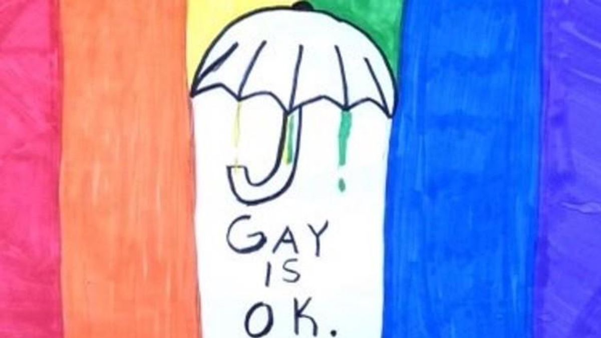 The picture, with rainbow colors and the words "Gay Is OK," was being displayed by a teacher as part of an exhibit of student art at Oglethorpe Avenue Elementary School, Atlanta TV station WXIA reports. But Friday, administrators asked that the "Gay Is OK" artwork be removed, saying a parent had complained about it. When challenged, one administrator said exhibiting the picture was comparable to hanging a Nazi flag, parents told the station.