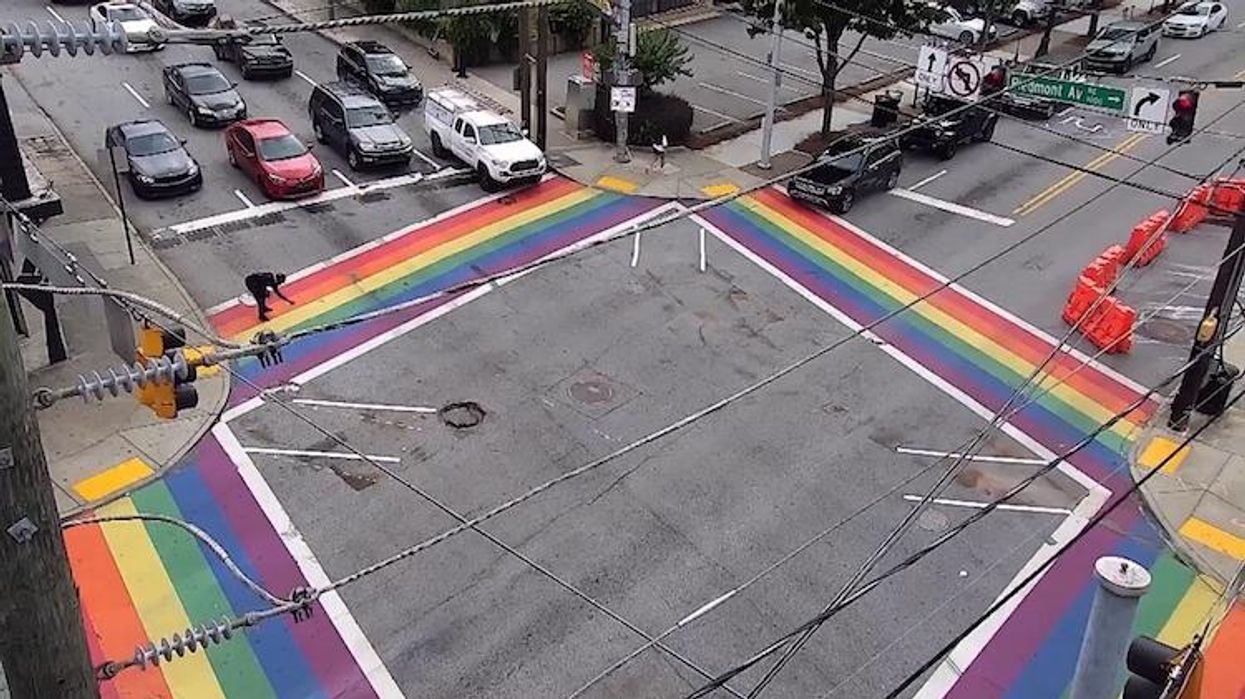 The rainbow crosswalks are located at the intersection of 10th Street and Piedmont Avenue in Atlanta's midtown community, in front of the site of the city's first LGBTQ+ bookstore. The crosswalks were originally installed ahead of the 2015 Pride festival. The city of Atlanta made the rainbow crosswalks a permanent feature in 2017 as a "remembrance of the 49 LGBTQ+ lives lost in the horrific 2016 Pulse nightclub shooting," the Mayor's Division of LGBTQ Affairs said on its website.