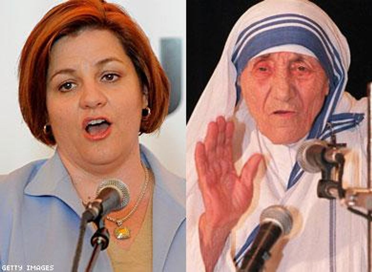 Quinn, a lesbian who typically finds herself fighting the Catholic Church's conservative dogma, supported the Catholic League's efforts to have the iconic Empire State Building illuminated with blue and white lights on what would have been Mother Teresa's 100th birthday, on August 26.