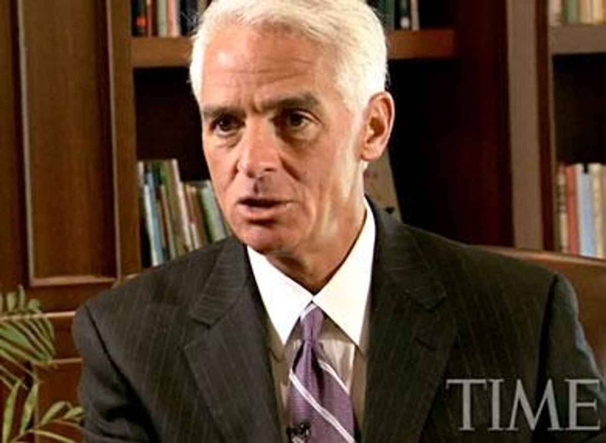 Florida governor and U.S. Senate hopeful Charlie Crist fielded questions on the oil spill in the Gulf of Mexico and on his state's gay marriage ban in an interview with Time magazine.