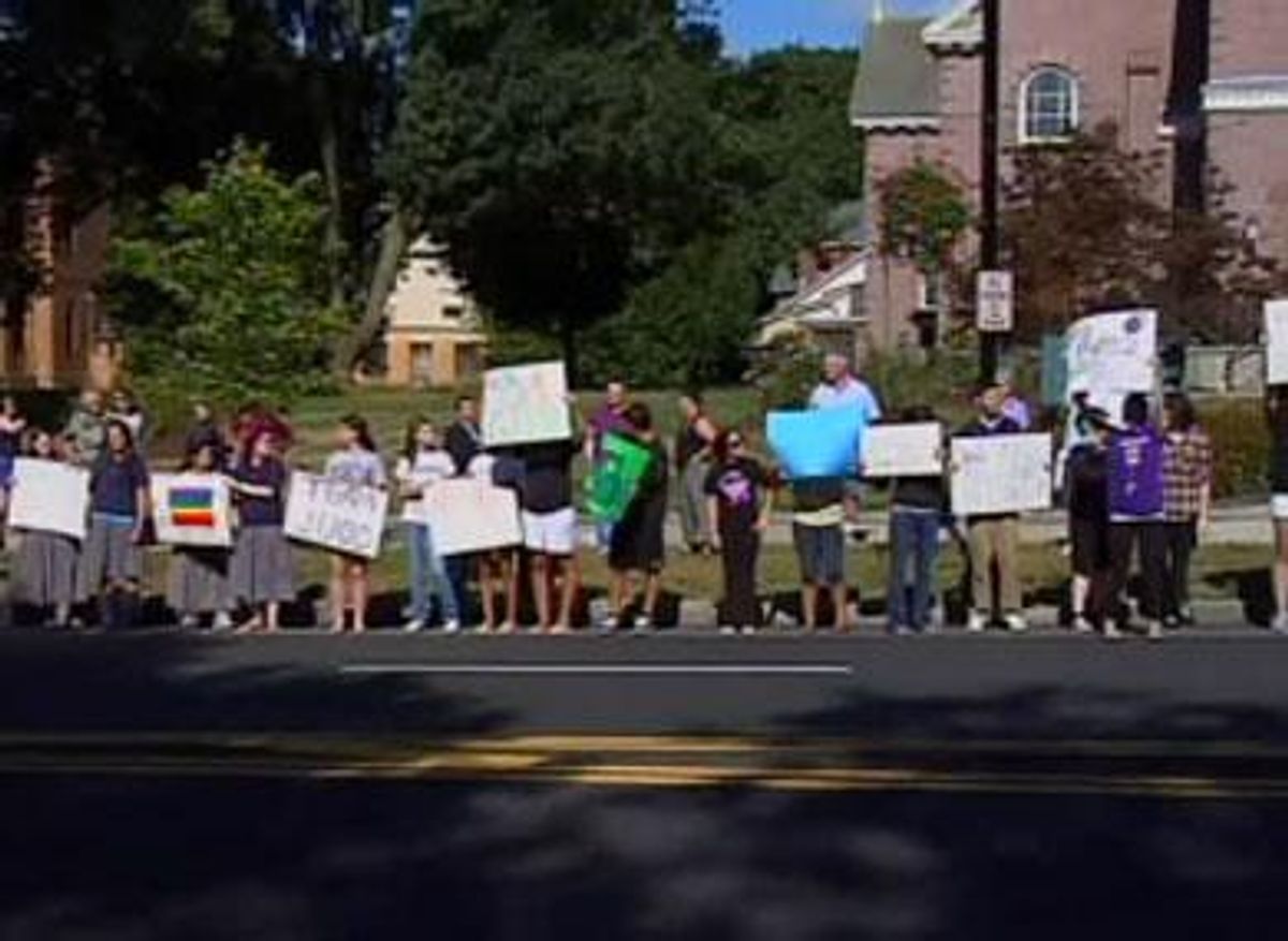 Dozens of students turned out Friday to protest the resignation of Christine Judd, the lesbian dean and athletic director of Cathedral High School in Massachusetts, who said she was forced to step down after she married her partner.