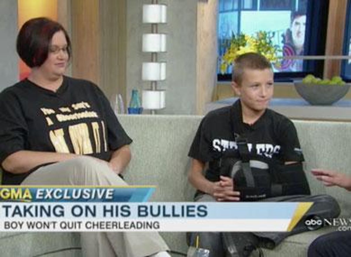 Tyler Wilson, the 11-year-old cheerleader whose arm was broken by bullies who taunted him for joining the squad, appeared on Good Morning America Wednesday to explain why he plans to keep on cheering.