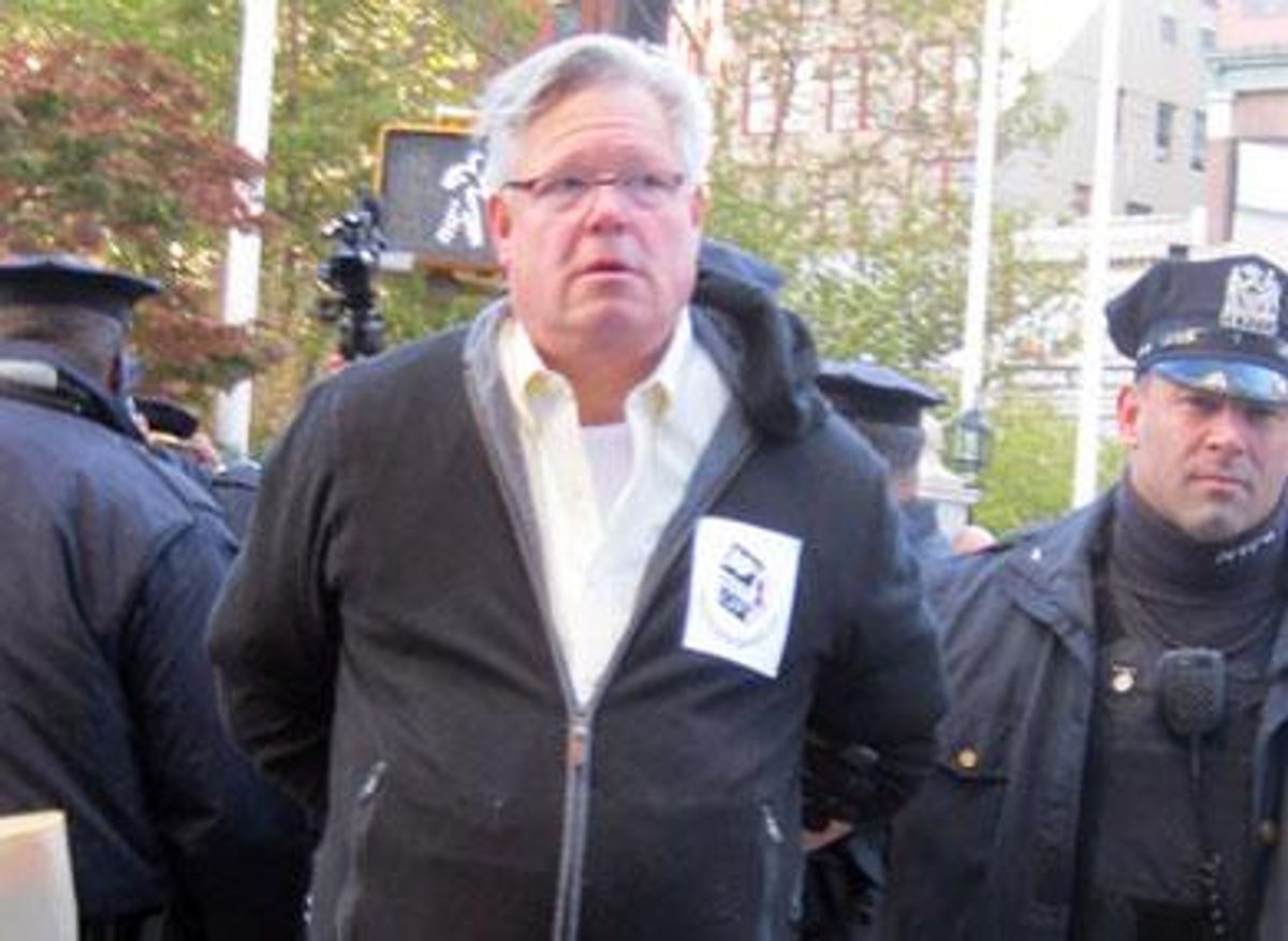 Eighteen people were arrested Tuesday, including New York state senator Thomas Duane, protesting Gov. David Paterson's veto of a bill that would have ensured that low-wage earners with HIV would spend no more than 30% of their salary on rent.