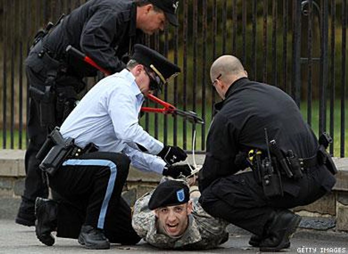 Among those arrested by the U.S. Park Police were former Army lieutenant Dan Choi and the Reverend Geoff Farrow, a Catholic priest who has spoken in favor of marriage equality, CNN reports. The group chanted, "I am somebody! I deserve full equality!" and "Let us serve!" throughout the protest.