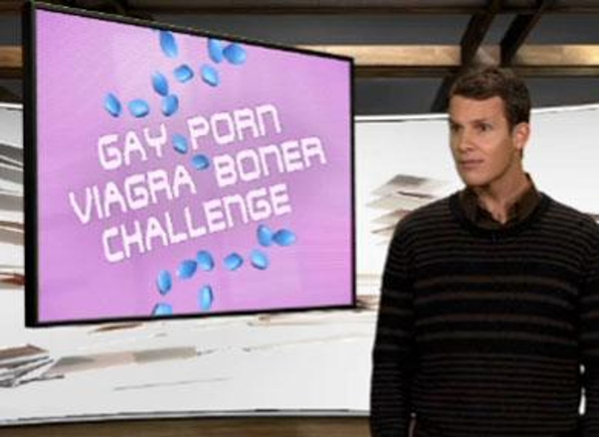 Tosh.0 host Daniel Tosh challenges his staff members to pop a Viagra, watch two hours of gay porn, and see who gets aroused first.