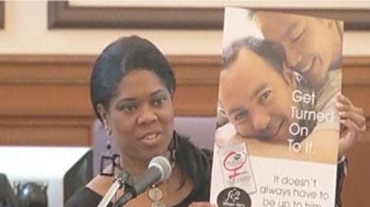 The condoms, handed out at City Hall and other public places Monday,