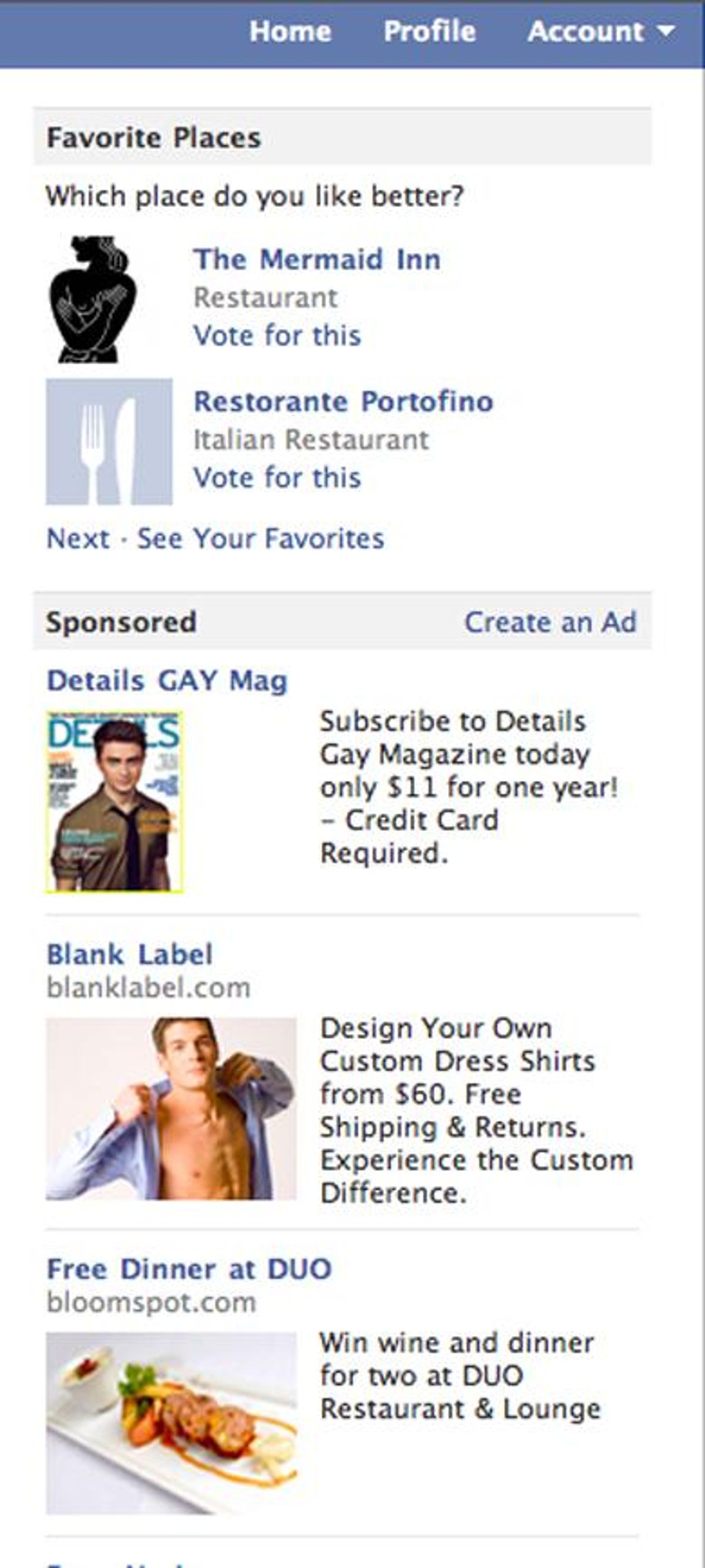In a quirk of Internet smart-marketing, Facebook offers subscriptions to "Details GAY Mag." Details has seen Adam Lambert on its cover, along with a ton of gay faves, including Matthew Morrison, Joe Jonas, Channing Tatum, Brad Pitt -- OK, all its covers feature gay faves.