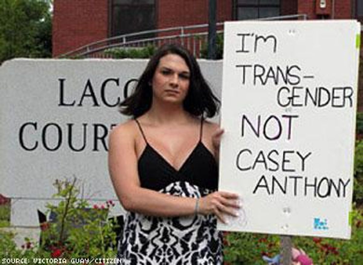 Ally Collina says the ex-wife of her fiance won't allow her to see the 2-1/2-year-old because of her transgender status, though the mother's attorney claims it's because Collina has a criminal record that includes assault and robbery. Collina, who picketed the Family Division of the Laconia District Court on Tuesday, says she hasn't committed any crimes since being released from prison in 2009.