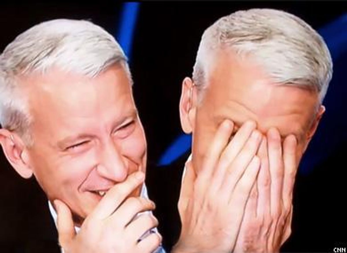 The usually composed Anderson Cooper burst into uncontrollable (and infectious) giggles while delivering a pun-filled RidicuList segment on French actor Gerard Depardieu's arrest for urinating in the cabin of an airplane.