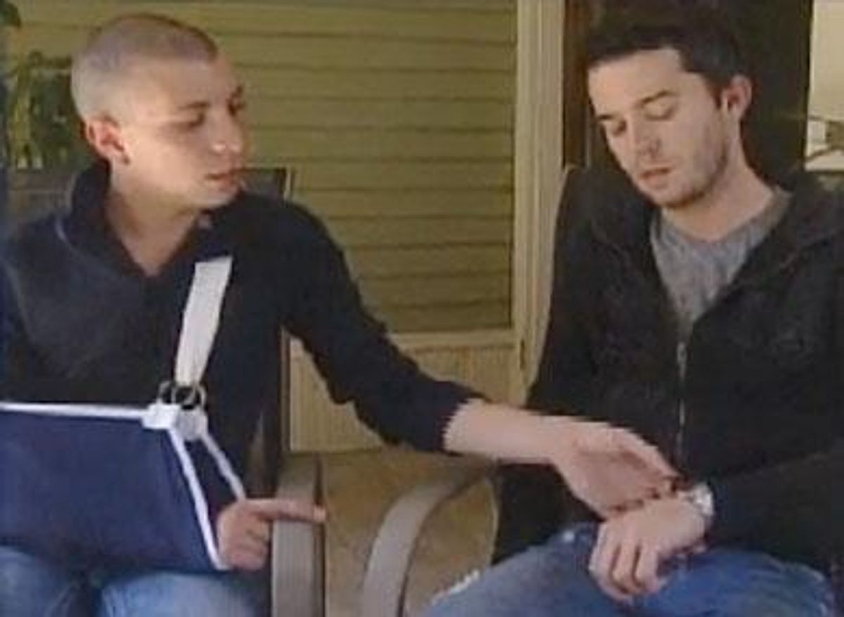 A gay Tennessee couple allege that they were beaten as they tried to attend services at Grace Fellowship Church in Fruitland -- and that the assault was prompted by the father of one of them, who happens to be church's pastor.