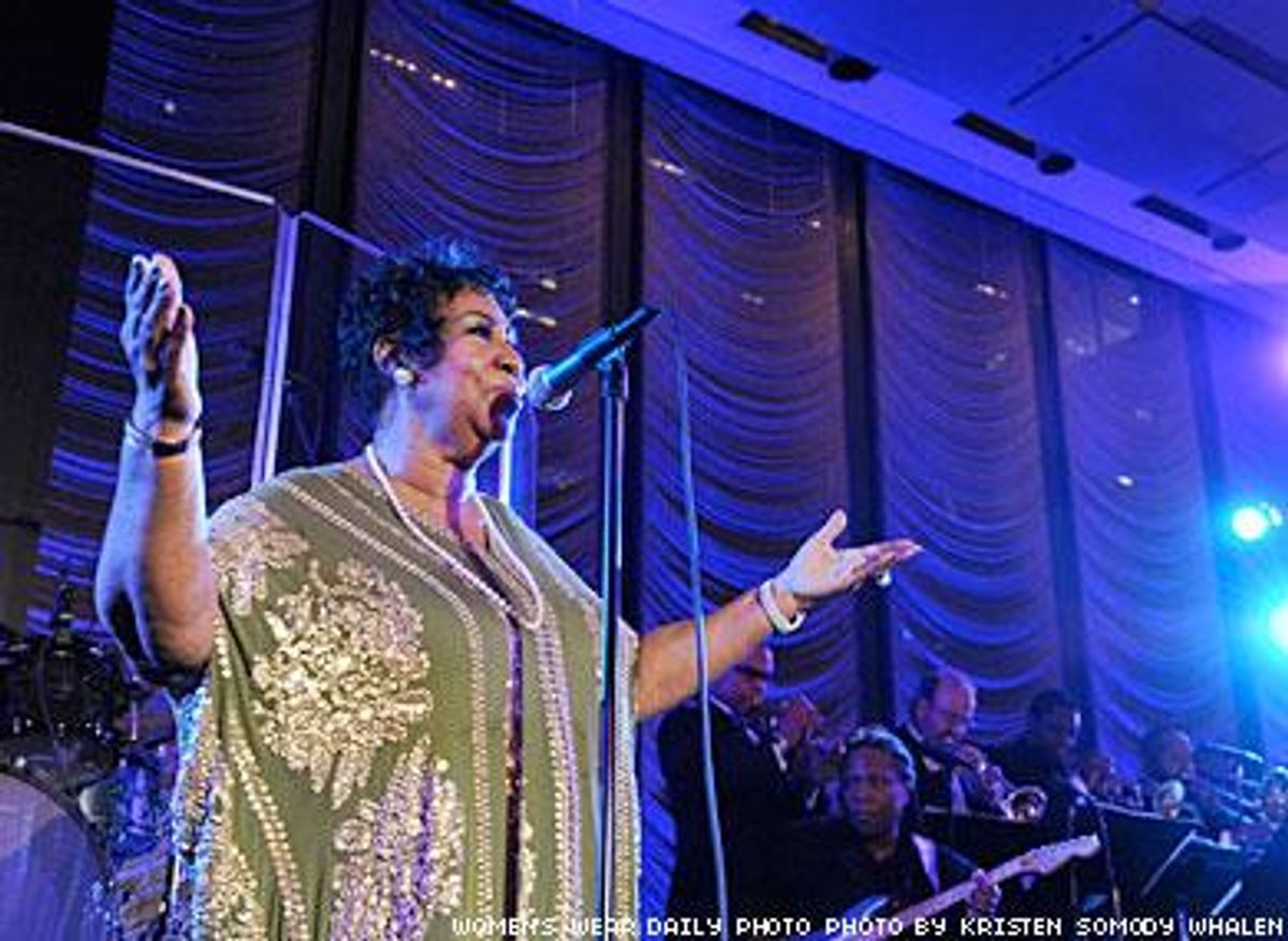Music legend Aretha Franklin serenaded newlyweds Bill White and Bryan Eure after the two were married by Prop. 8 attorney David Boies, reports Women's Wear Daily.