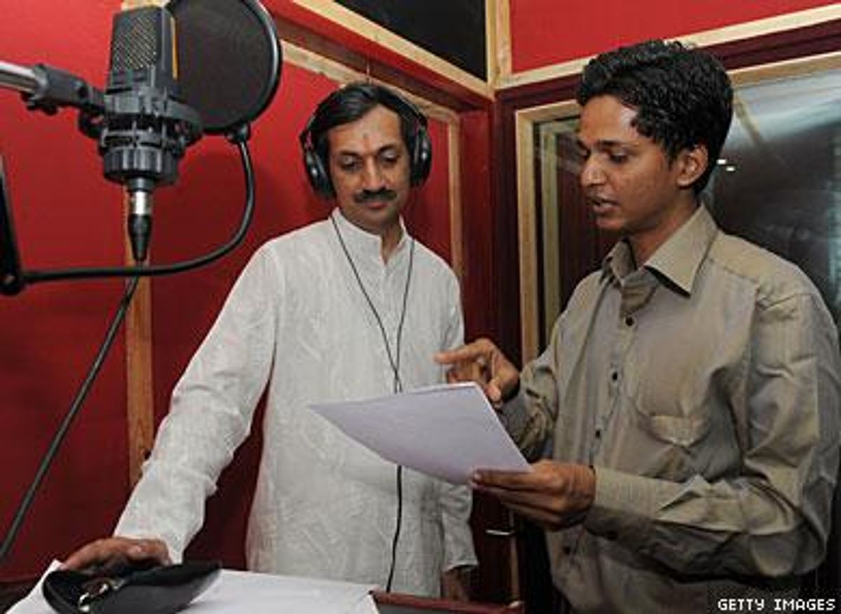 Meghdhanushya--the Colours of Life is currently in production. Pictured above is Indian gay activist Manvendra Singh Gohil (left) helping dub the film Saturday; director K.R. Devmani is on the right. Read more about the movie here.