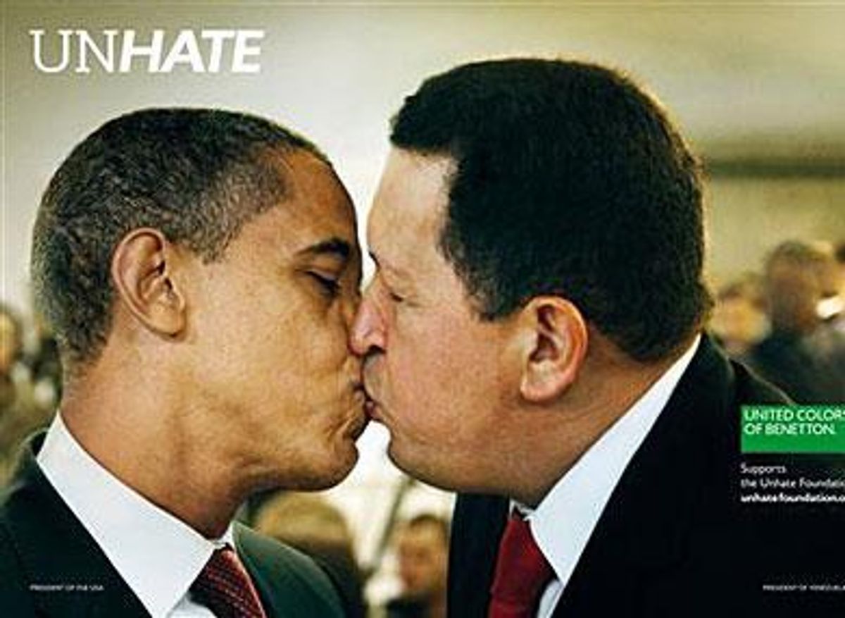 Obama is shown kissing Chinese leader Hu Jintao and Venezuala's Hugo Chavez in two separate ads. But that isn't the problem.