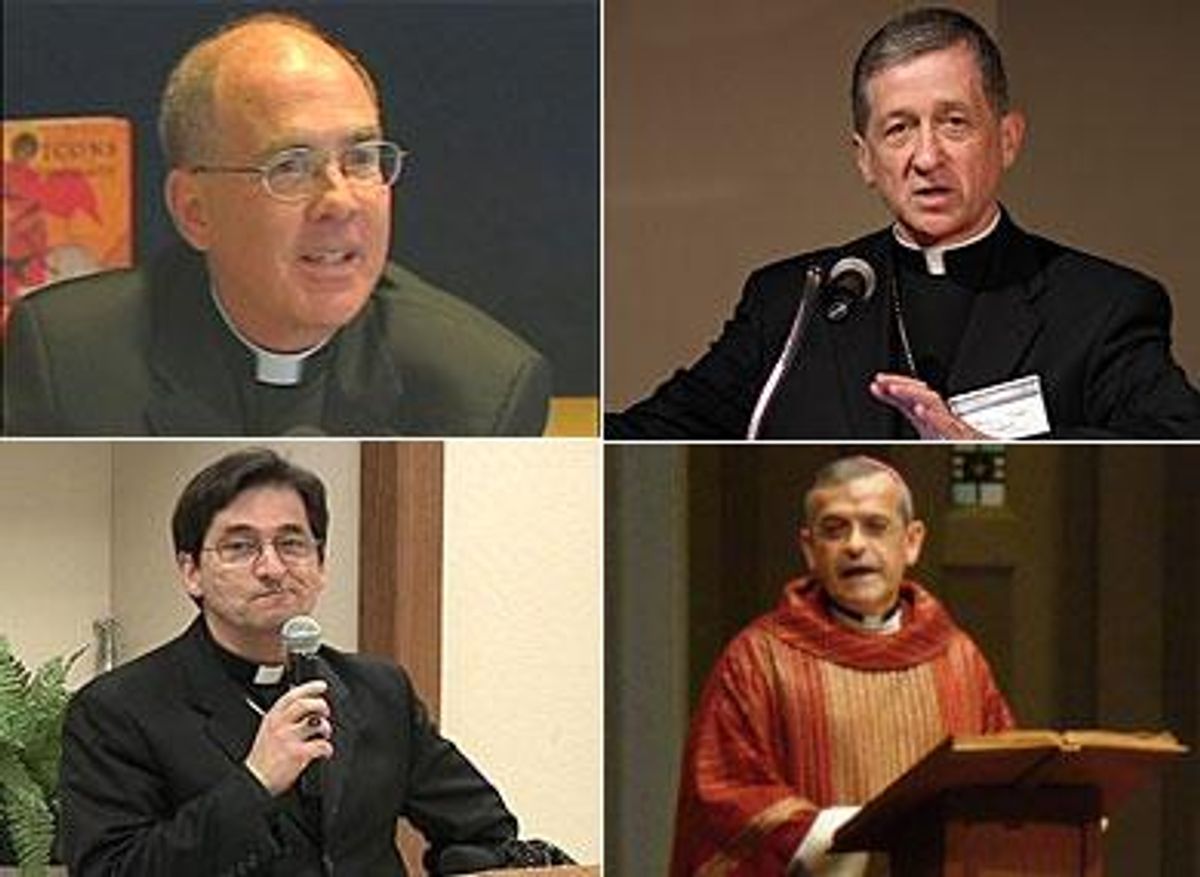 The bishops say that only heterosexual marriage should be legally recognized because it is "related to bringing children into the world and the continuation of the human race." There are "forces already undermining family life today," and recognizing other unions would exacerbate the situation, they write. They also say that limiting marriage to straight couples "does not depend on anyone's religious beliefs" and that this definition of marriage "is grounded not in faith, but in reason and the experience of society." The letter was signed by (pictured, clockwise from top left) J. Peter Sartain, Blase Cupich, Eusebio Elizondo, and Joseph J. Tyson.