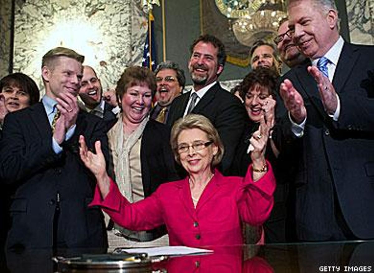 Gregoire's bill signing was the day's second historic event for marriage equality, with the New Jersey state Senate passing a marriage bill in a 24-16 vote. Gov. Chris Christie has vowed to veto the bill, however. (Read more on the New Jersey vote here.)
