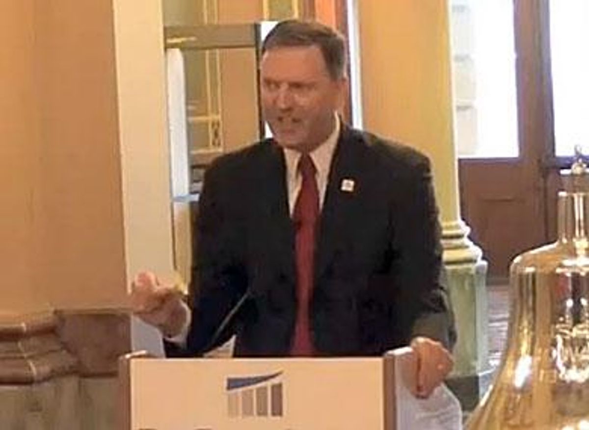 Pro-marriage equality forces gathered Tuesday at the capitol as well, in a counterpoint to the antigay rally. There, Sen. Matt McCoy, the legislature's only openly gay member, told reporters, "Bob Vander Plaats needs to get a real job instead of working on spreading a message of hate and discrimination."