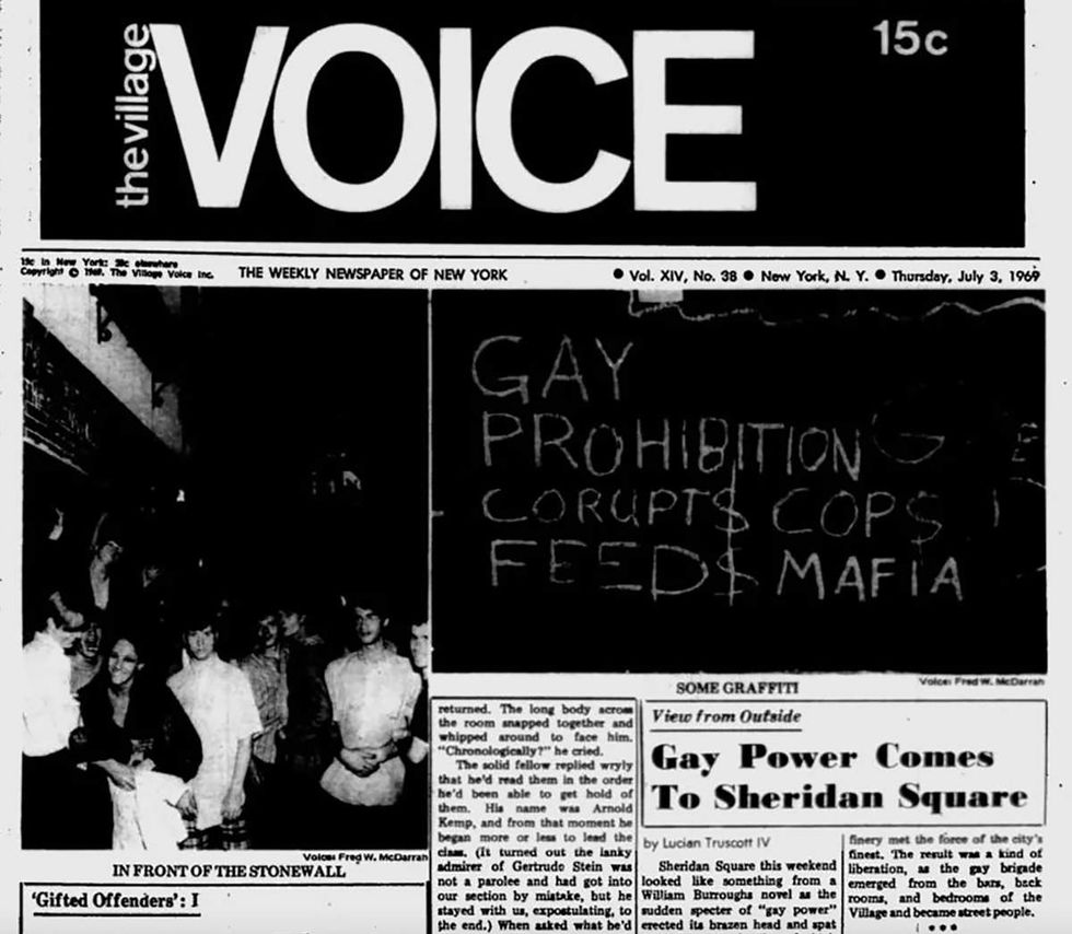 One person threw a cobblestone through the window of the Stonewall. Then someone lit a newspaper on fire and threw it into the bar. The fire was put out, but “the riot kept going on, people were yelling, throwing pieces of wood, anything they could,” Truscott says.
