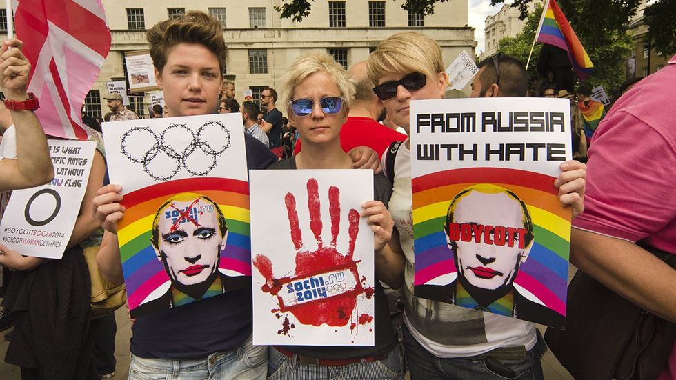 Last December, Putin signed a law strengthening a ban on LGBTQ “propaganda” in Russia and making it illegal to promote same-sex sexual relations or suggest non-heterosexual attractions are “normal.” Individuals can be fined up to 400,000 rubles ($6,370) for “LGBT propaganda” and up to 200,000 rubles ($3,185) for “demonstrations of LGBT and information that encourages a change of gender among teenagers.” The fines increase to 5 million rubles ($80,000) and 4 million rubles ($64,000) respectively for legal entities.