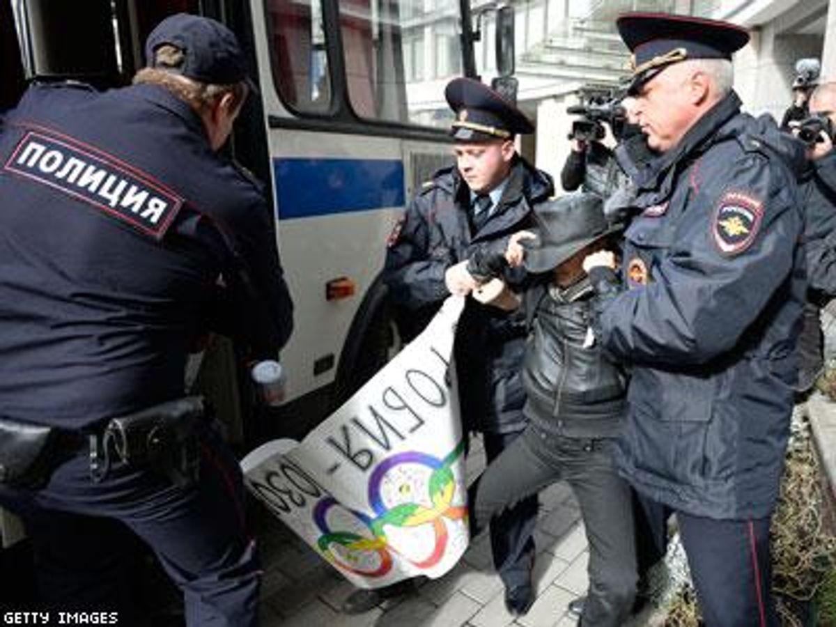 This summer, the State Duma unanimously passed and president Vladimir Putin signed into law a ban on "propaganda of nontraditional sexual relationships" in any medium or venue that might be accessible to minors, essentially criminalizing positive depictions of LGBT identities. LGBT Russians and tourists have been arrested, beaten, and harassed with increasingly frequency and violence under the state-sanctioned discrimination. Russian and Olympic officials have repeatedly said that LGBT athletes and spectators will be safe in Sochi during the games without providing clear explanations as to what kind of behavior might be considered "propaganda."