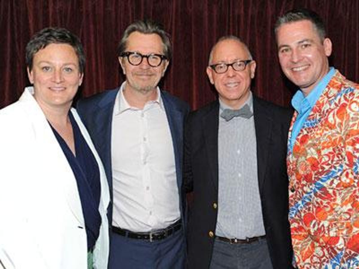 Outfest board co-presidents Laura Ivey (left) and Joe Keenan (far right), actor Gary Oldman, and producer James Schamus