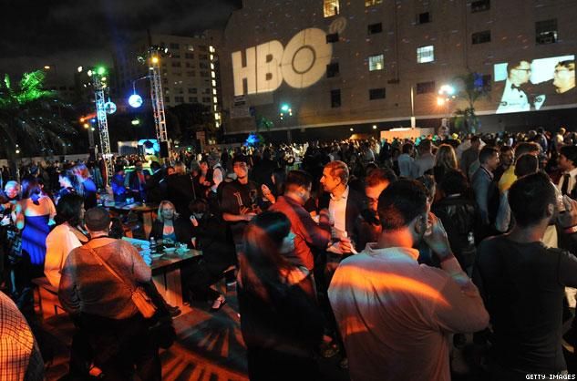 Guests mingle after the screening of Life Partners at the Outfest Opening Night Gala, held at the Orpheum Theatre in Los Angeles.