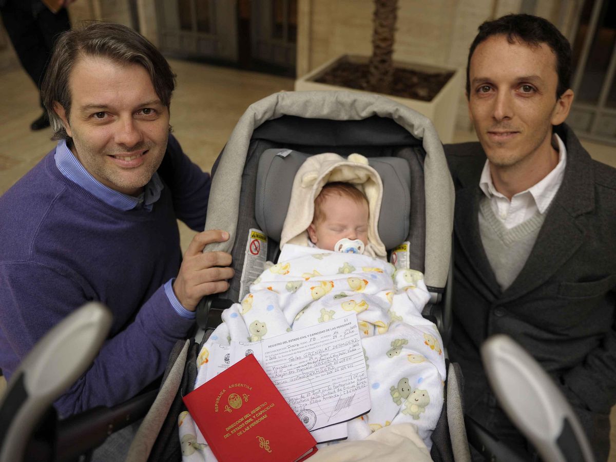 The two St. Gallen-based fathers, whose partnership is legally registered in their home country, chose to have their child through the artificial insemination of a donor egg by one partner's sperm. Both were listed as fathers on the U.S. birth certificate, after their California-based surrogate mother delivered the newborn and abdicated parental rights.