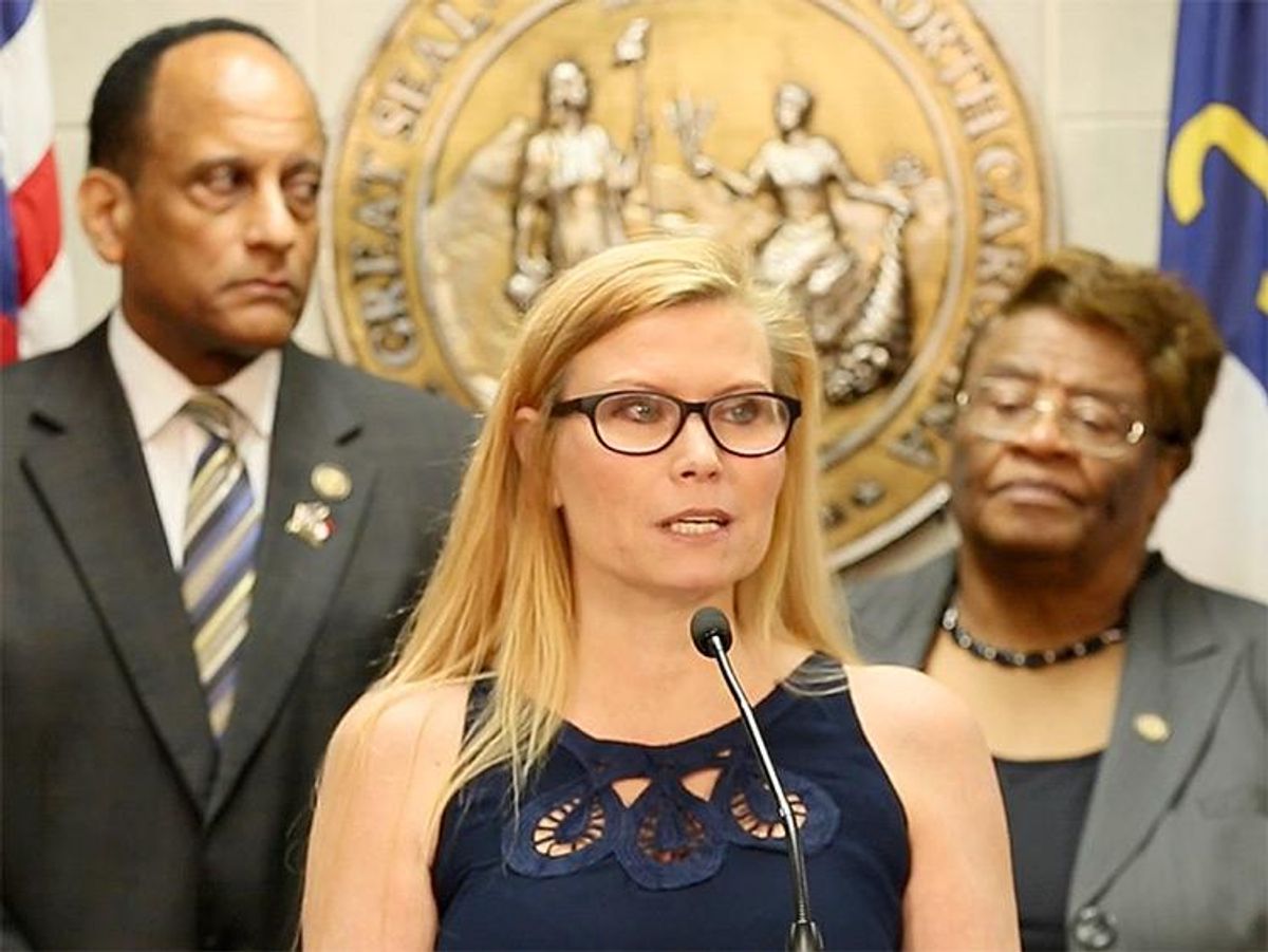Hope Tyler of Raleigh shared her family's experience at a Wednesday press conference at the North Carolina Legislative Building.